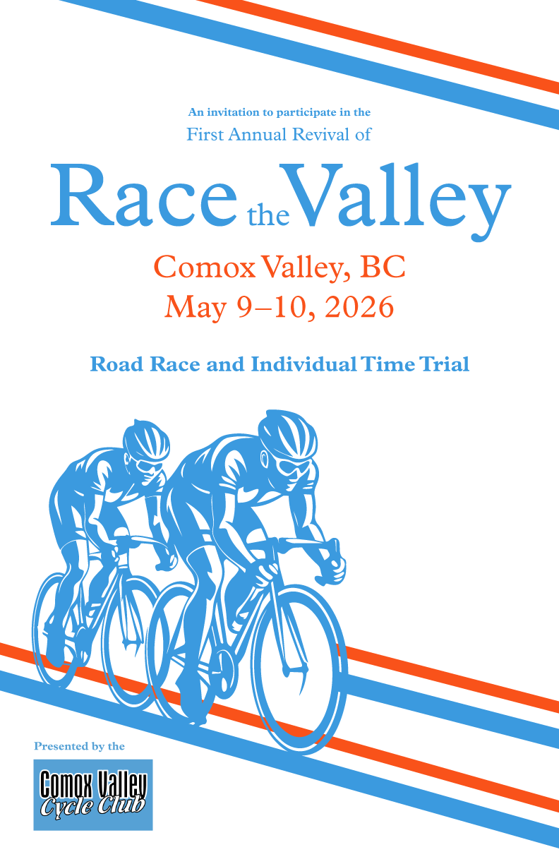 Exciting news; revival of a road race in the Comox Valley in 2026! Date will be Saturday, May 9, and it will be combined with a time trial. The course tba once we have approval confirmation. This will bring Comox Valley cycling back to the force it has been in the...